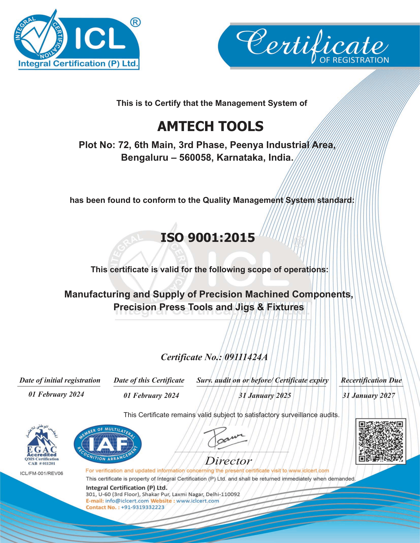 At Amtech Tools, quality is at the core of everything we do. Every component undergoes rigorous, stage-by-stage inspection using advanced measuring instruments to ensure it meets the highest international standards. Our AS 9100D:2016 and ISO 9001:2015 certifications reflect our unwavering commitment to precision, reliability, and consistency. From raw material selection to final delivery, our quality control team ensures every product is crafted with zero-compromise workmanship, delivering performance you can trust in mission-critical applications.